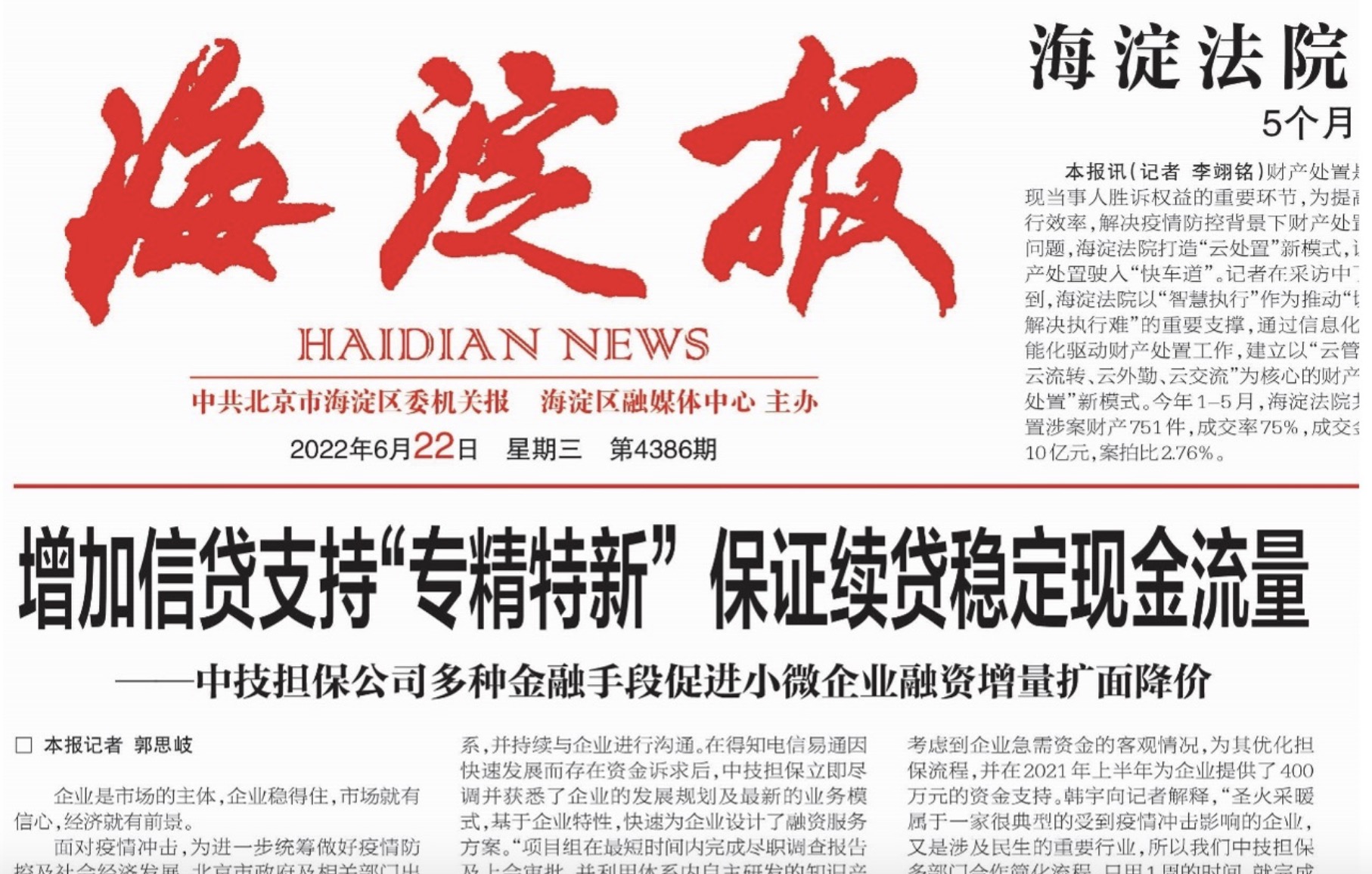 面对疫情冲击,为进一步统筹做好疫情防控及社会经济发展,北京市政府及相关部门出台了一系列为中小微企业纾困的相关政策,以切实减轻疫情对中小微企业生产经营的影响。76net必赢官网集团旗下北京中技知识产权融资担保有限公司(以下简称“中技担保”)积极响应各项政策号召,充分发挥政府性融资担保机构公共服务职能,切实履行国有企业社会责任,全力帮助中小微企业渡过难关,为企业注入发展活力。