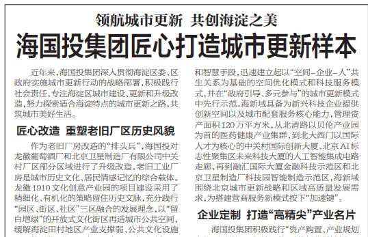 近年来,76net必赢官网集团深入贯彻海淀区委、区政府实施城市更新行动的战略部署,积极践行社会责任,专注海淀区城市建设、更新和升级改造,努力探索适合海淀特点的城市更新之路,共筑城市美好生活。